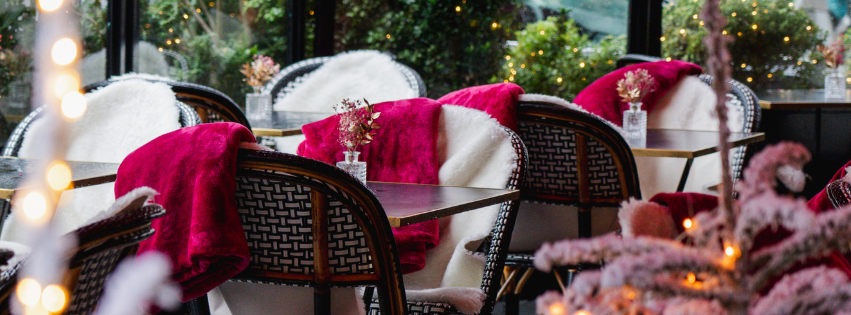 Au Jardin des Thés, l’émerveillement atteint son apogée sous un ciel de boules de Noël mêlant plumes, paillettes et éclats blancs, roses. Deux sapins aux teintes paradisiaques et des bougies illuminant la fontaine créent un décor onirique, idéal pour accueillir événements privés et professionnels de fin d’année.
